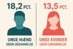 En stor del af de unge, der gik ud af grundskolen i 2023 forventes at stå uden uddannelse i 2031, viser analyse fra Arbejderbevægelsens Erhvervsråd (AE). Det gælder for begge køn, men særligt for mænd