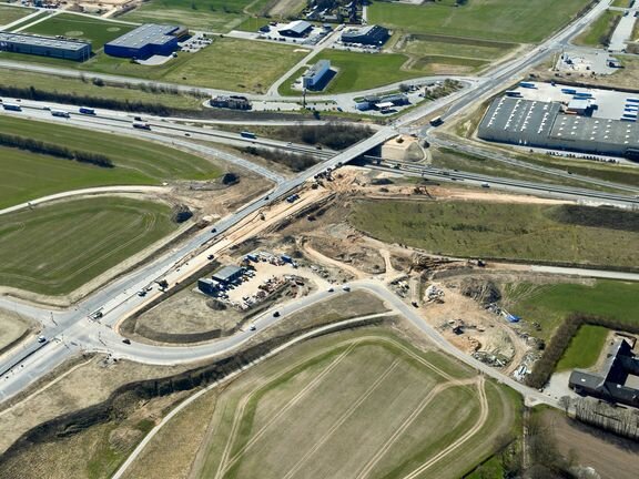 Vejdirektoratet forventer lang kø ved Randers på E45 i weekenden. Foto: Aerodan/Vejdirektoratet