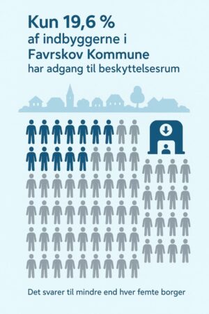 Favrskov Kommune har opgjort antallet af beskyttelsespladser til sammenlagt 9.701. Seneste opgjorte befolkningstal er 49.379, hvilket betyder, at der er beskyttelsespladser til 19,6% af befolkningen i kommunen. Og der planlægges ikke nye kommunale pladser.