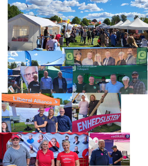 Bortset fra Dansk Folkeparti og SF er alle nuværende partier i Favrskov Byrås repræsenteret på Lilleå Markedet.