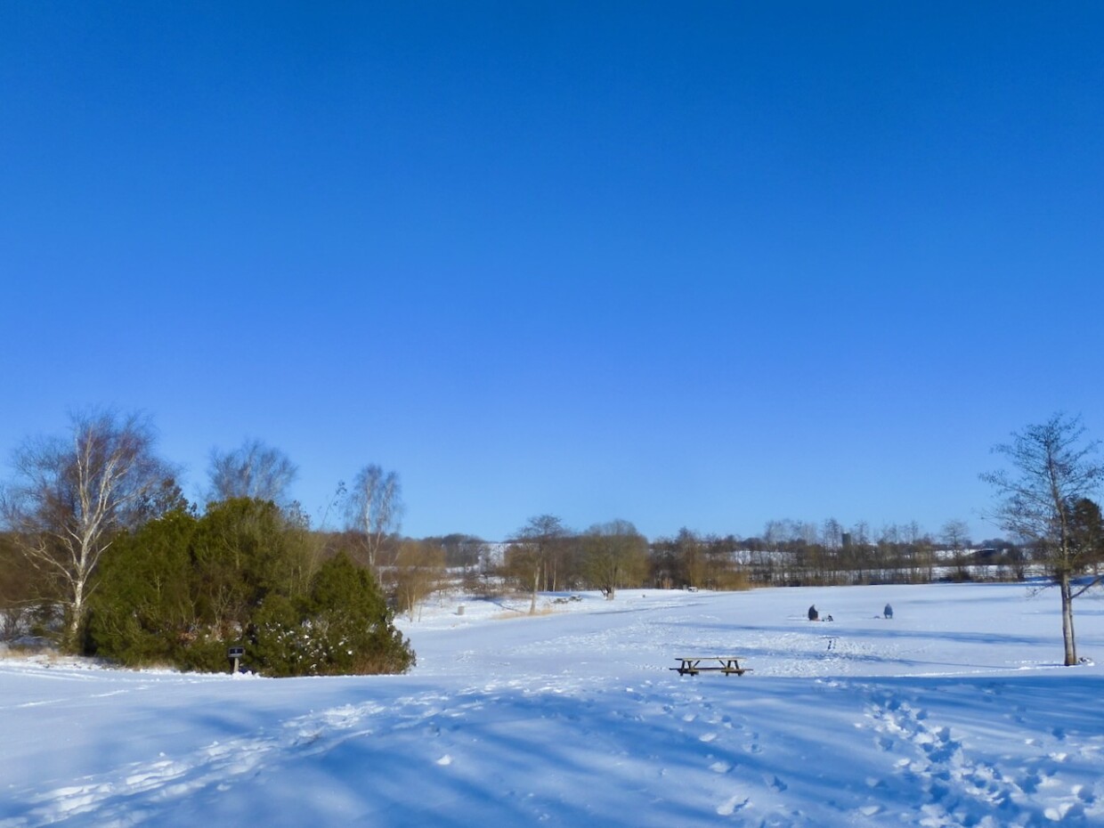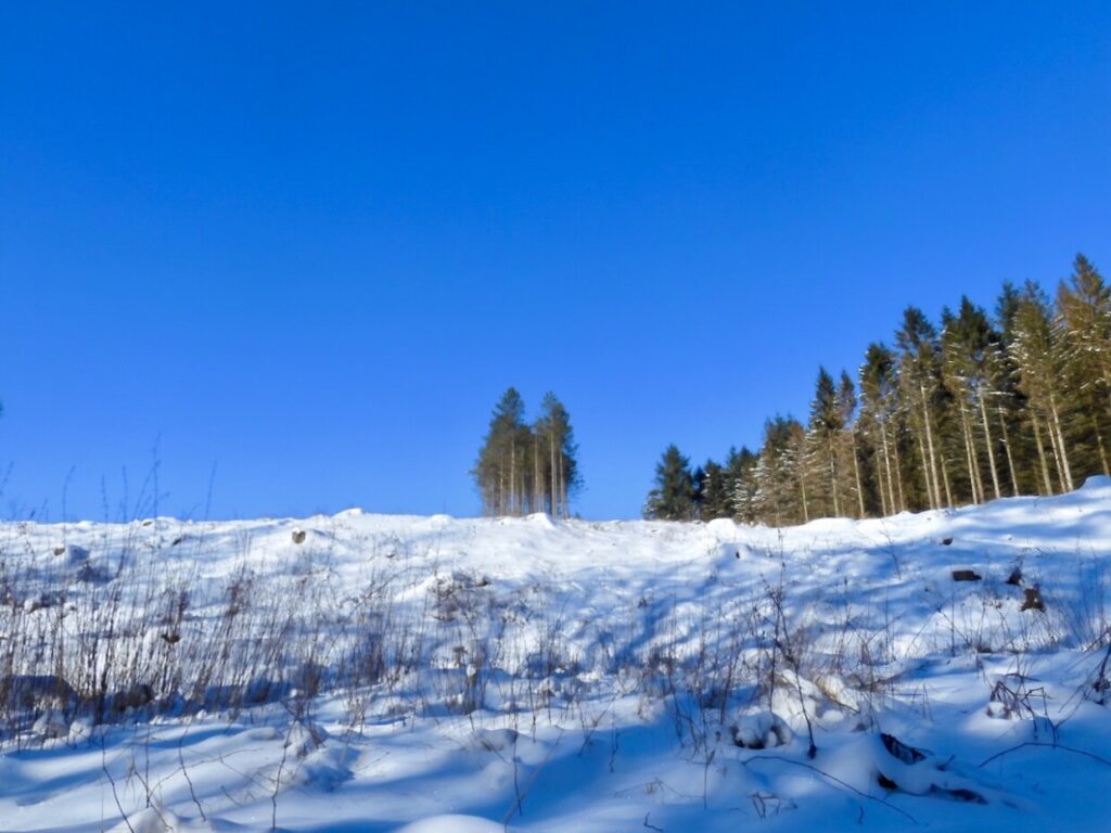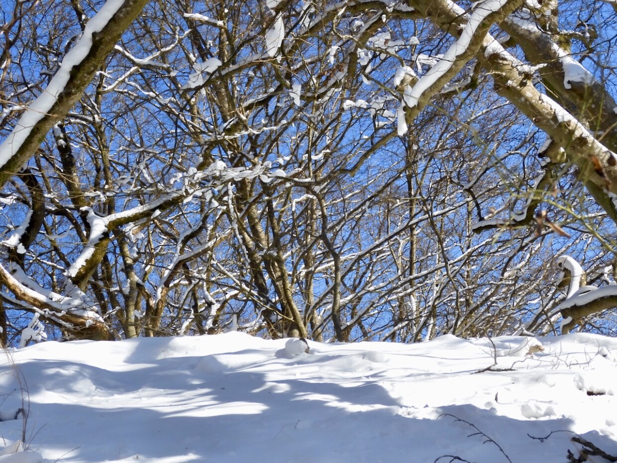 Kom med til skov og mark på en virkelig flot vinterdag, hvor kulden endnu engang bed fra sig. På fotoet her, er det som om vinteren/sneen giver træet et kæmpe kram 🥰