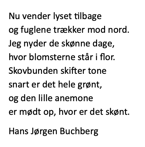 En tur til mark, skov, å og sø går man sjældent fejl af i april. Der er ofte mulighed for at opleve både heste, svaner, ænder og gæs. Ikke at forglemme, nyudsprungne træer og anemonetæppe.