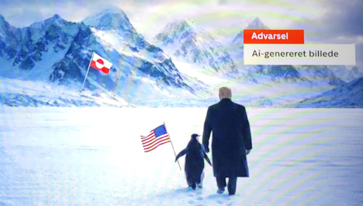 På billedet ses præsident Trump spadsere hånd i vinge med en pingvin i det grønlandske snelandskab, flankeret af flag og storpolitisk selvtillid. Et smukt øjeblik. Rørende endda. Også komplet biologisk nonsens.