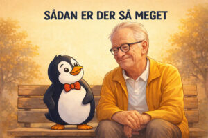 Når noget blev for stort, trak pingvinen på skuldrene. Når noget blev for småt, lænede manden sig frem. Og sådan fandt de balancen: lidt humor, lidt erfaring, en hel del ro.