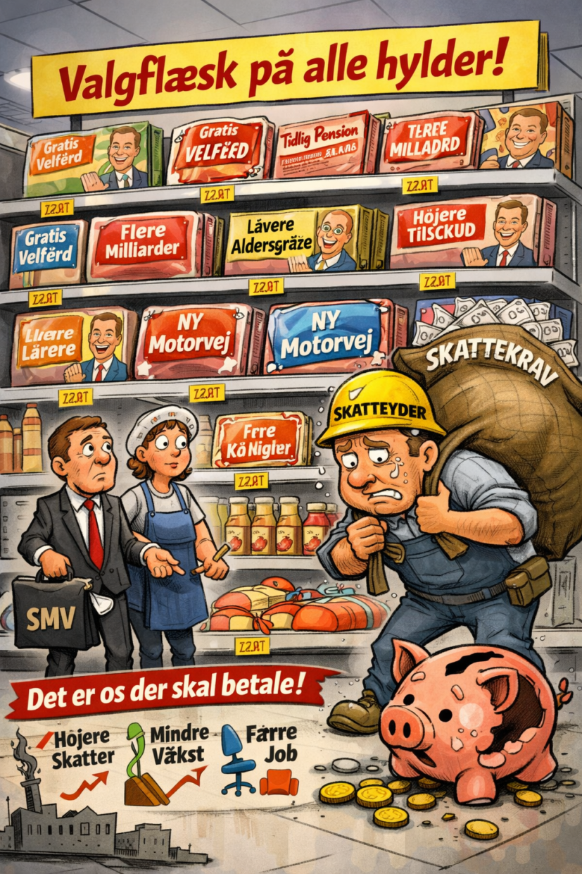 For der er ingen magi i økonomi. Når politikerne lover milliarder, er det ikke “systemet”, der betaler. Det er helt konkrete mennesker: dig, din kollega og de virksomheder, der skaber værdierne i samfundet.