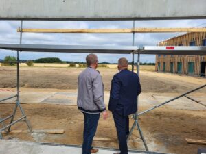 Foto: Anders G. Christensen og Lars Storgaard i samtale om den kommende solcellepark, der bliver nabo til plejecentret