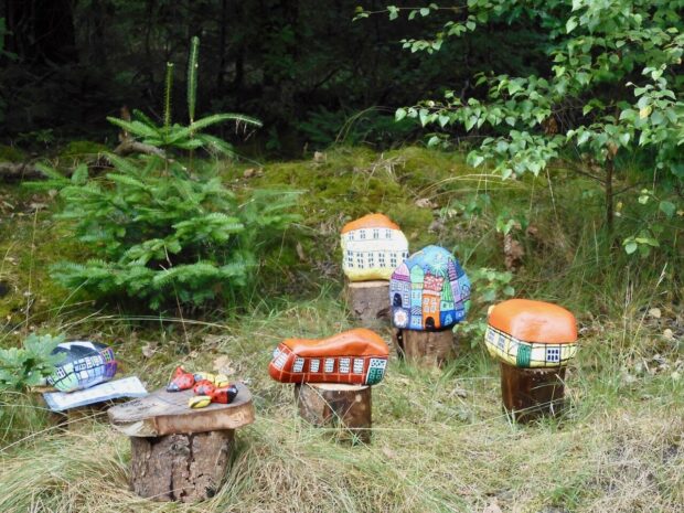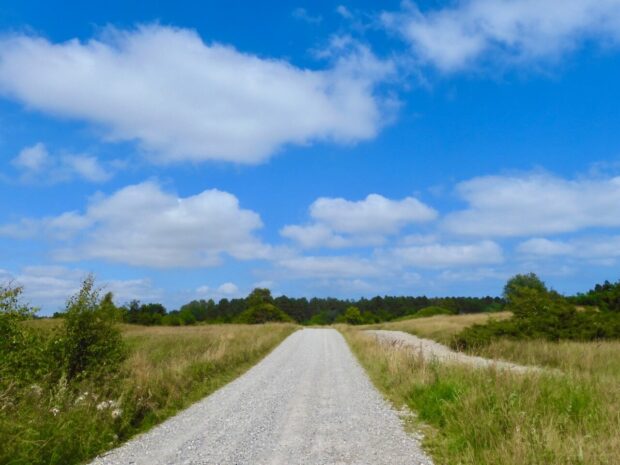 På vej i Grenå Plantage for at følge kunststien ind til byen.