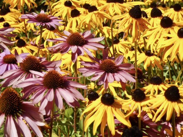 Både havens solhatte og markens vilde blomster er tæt på afblomstring.