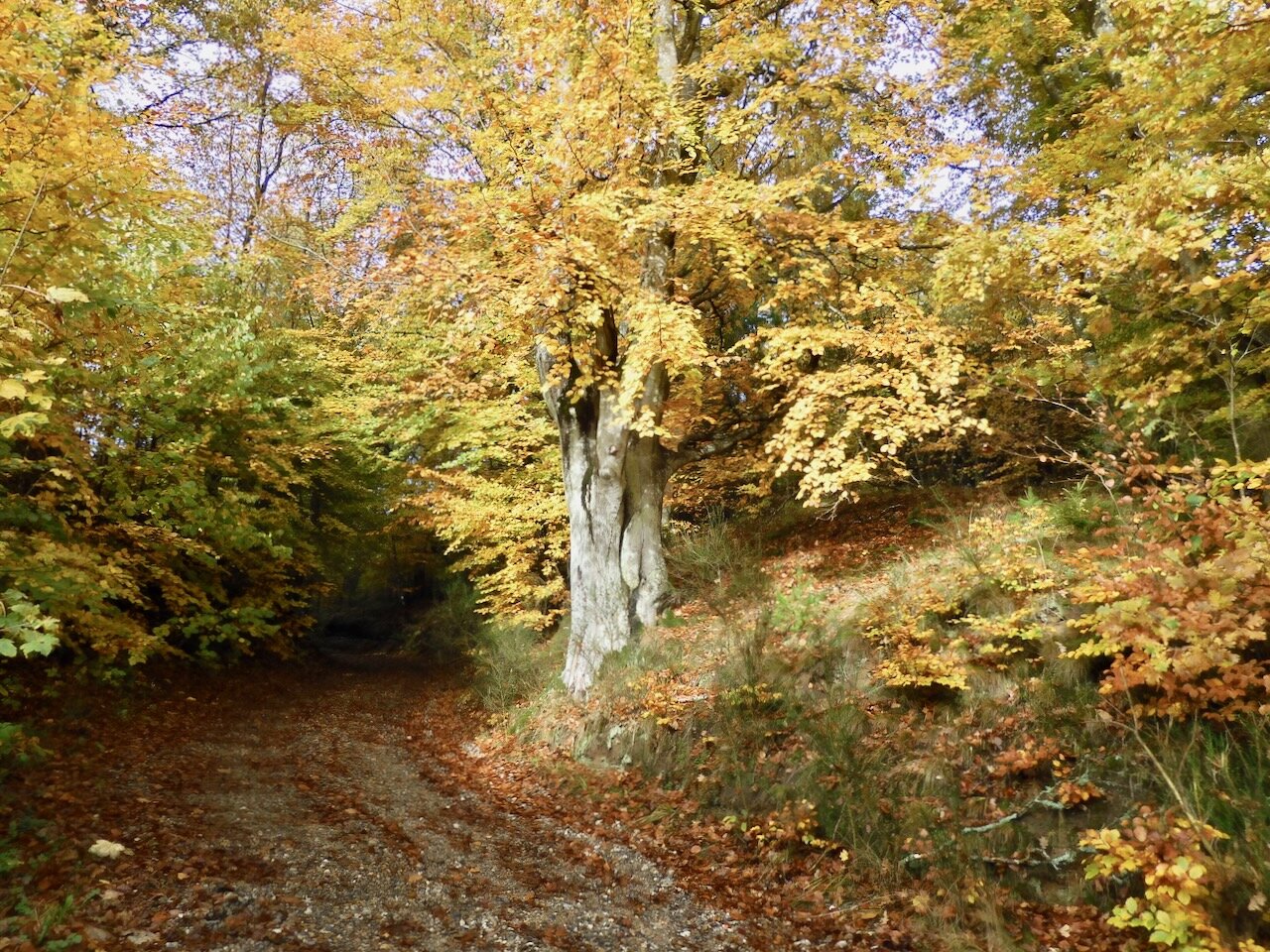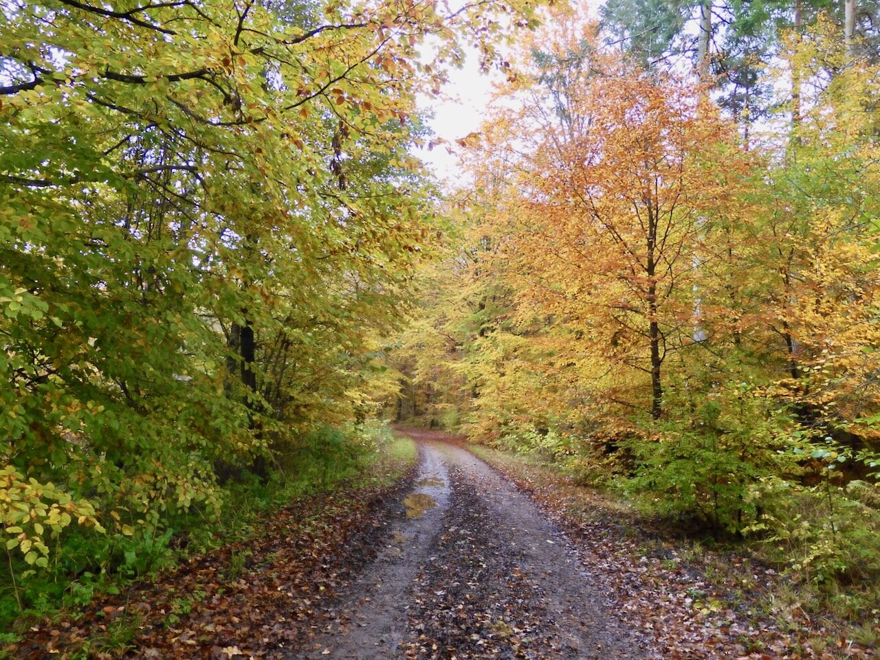 Lidt svært at blive træt af skovens farver lige p.t. også på en gråvejrsdag.