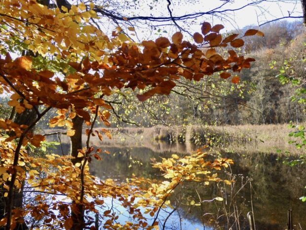 Også ved søen var der et flot farvespil i de blade, der fortsat hænger ved.