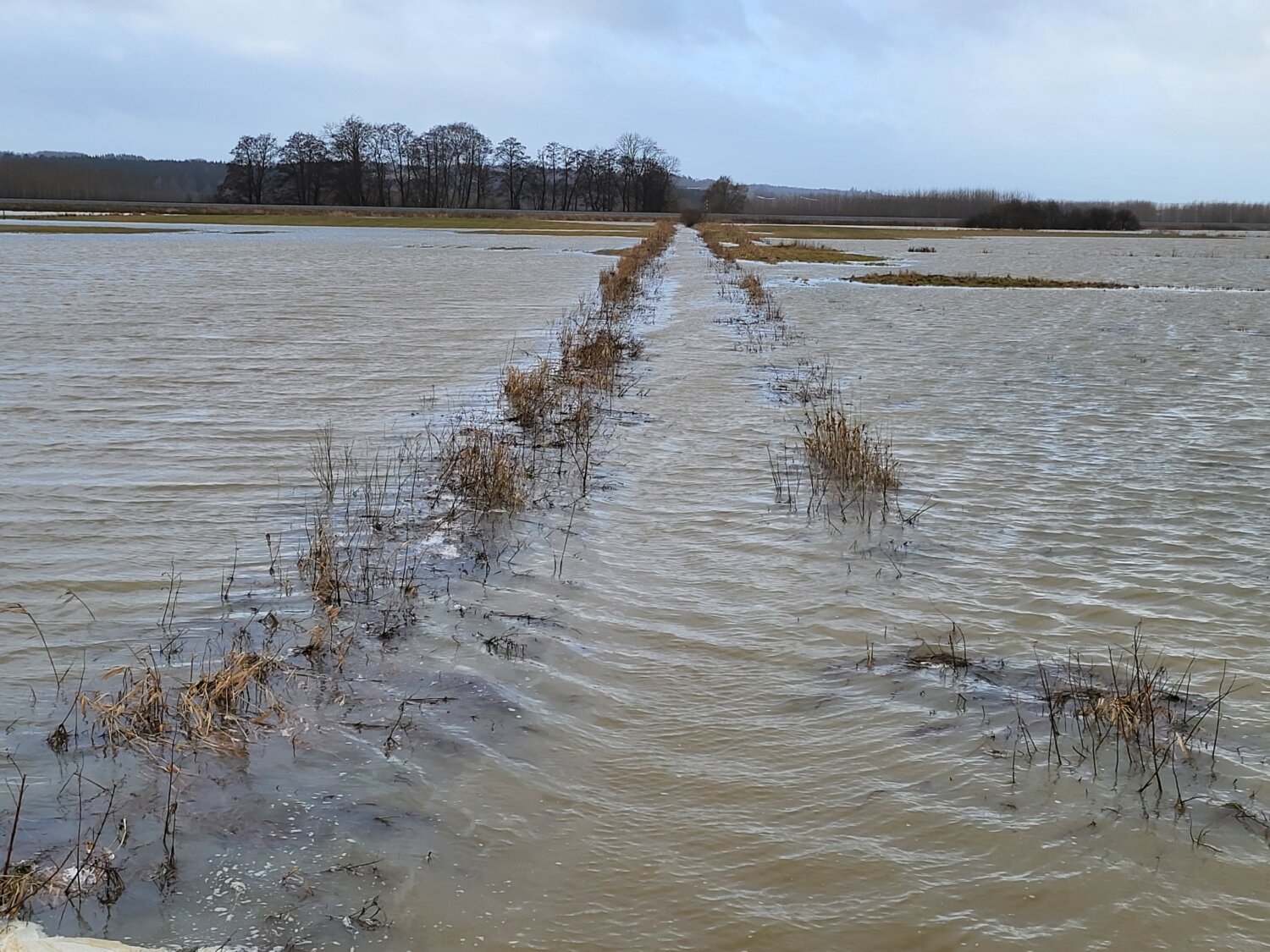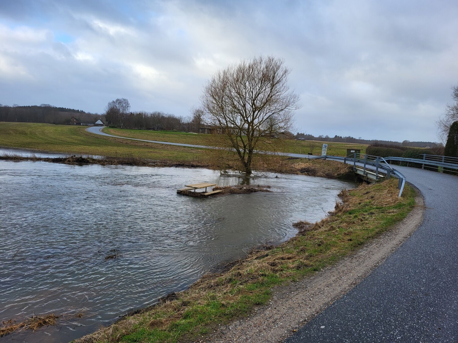 Lilleåen er ”forsvundet” i en sø omkring broen ved Faurskovvej i Hadsten.